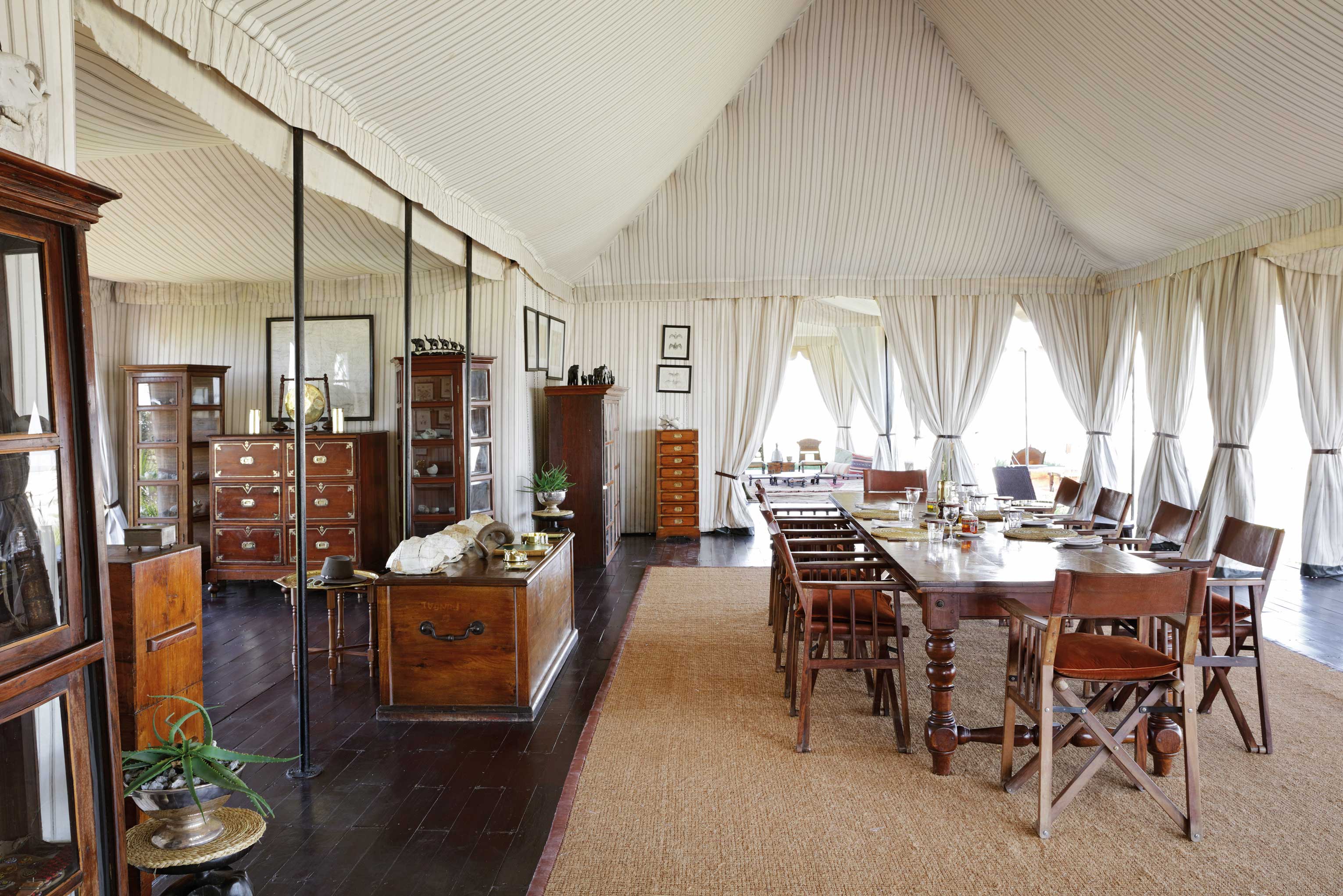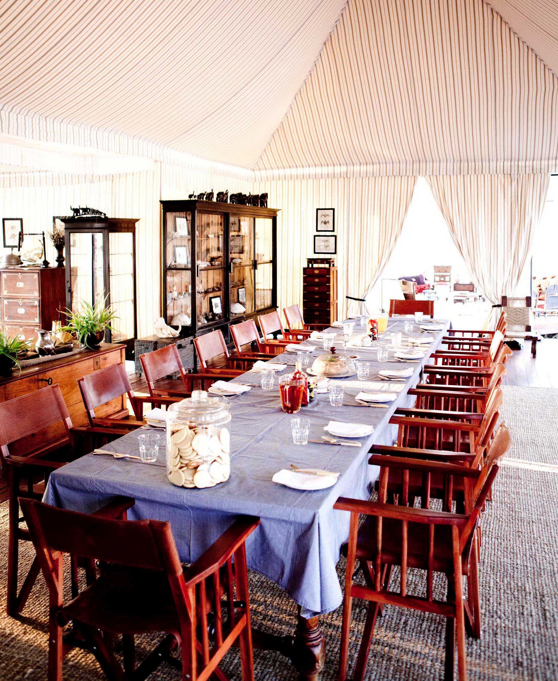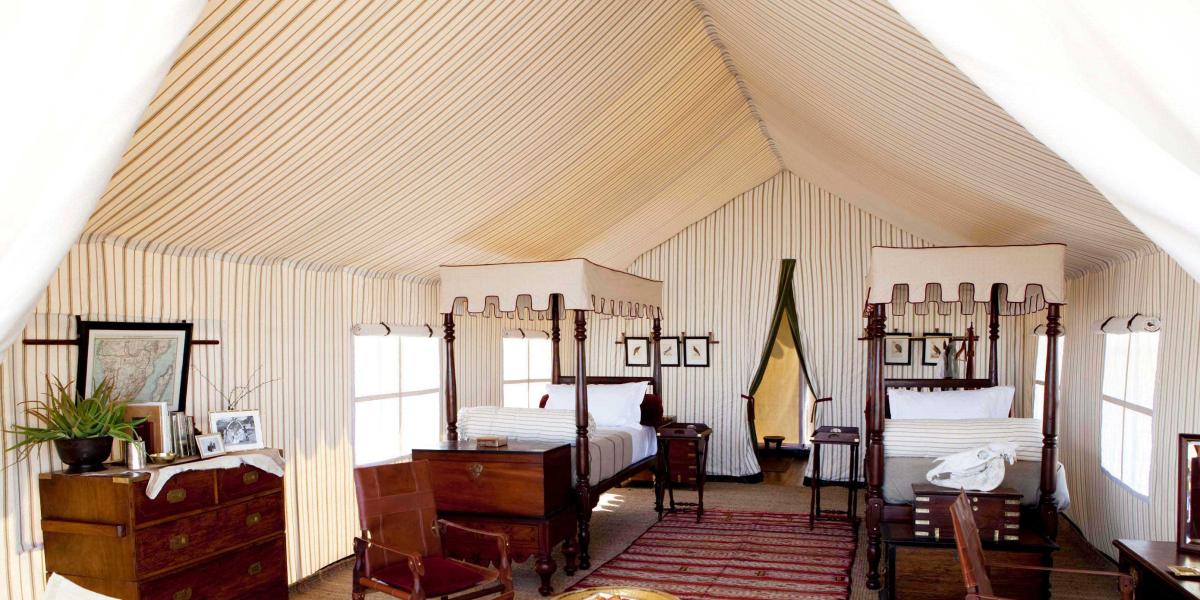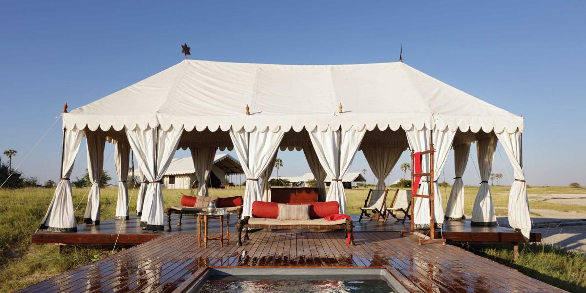 Selinda Explorers Camp is located in the 130,000 hectare Selinda Reserve of northern Botswana and is built on the banks of the Selinda Spillway, about one hour west of its sister camp, Selinda. This classic camp transports us back to the time of authentic safaris, but with a modern twist and hospitality. The camp’s focal point is the Bedouin-style main area consisting of a lounge and separate dining room. The four guest's tents provide comfort and style but with a magnificently raw spirit. Subtly placed under the shade of the riverine forest, the camp is designed in the style of the early explorers both in philosophy and practice. Whiling away afternoons under the canopy of African ebony and Mopane trees, interspersed with walks and canoeing, make this a respite from the ‘daily grind' of a traditional safari.