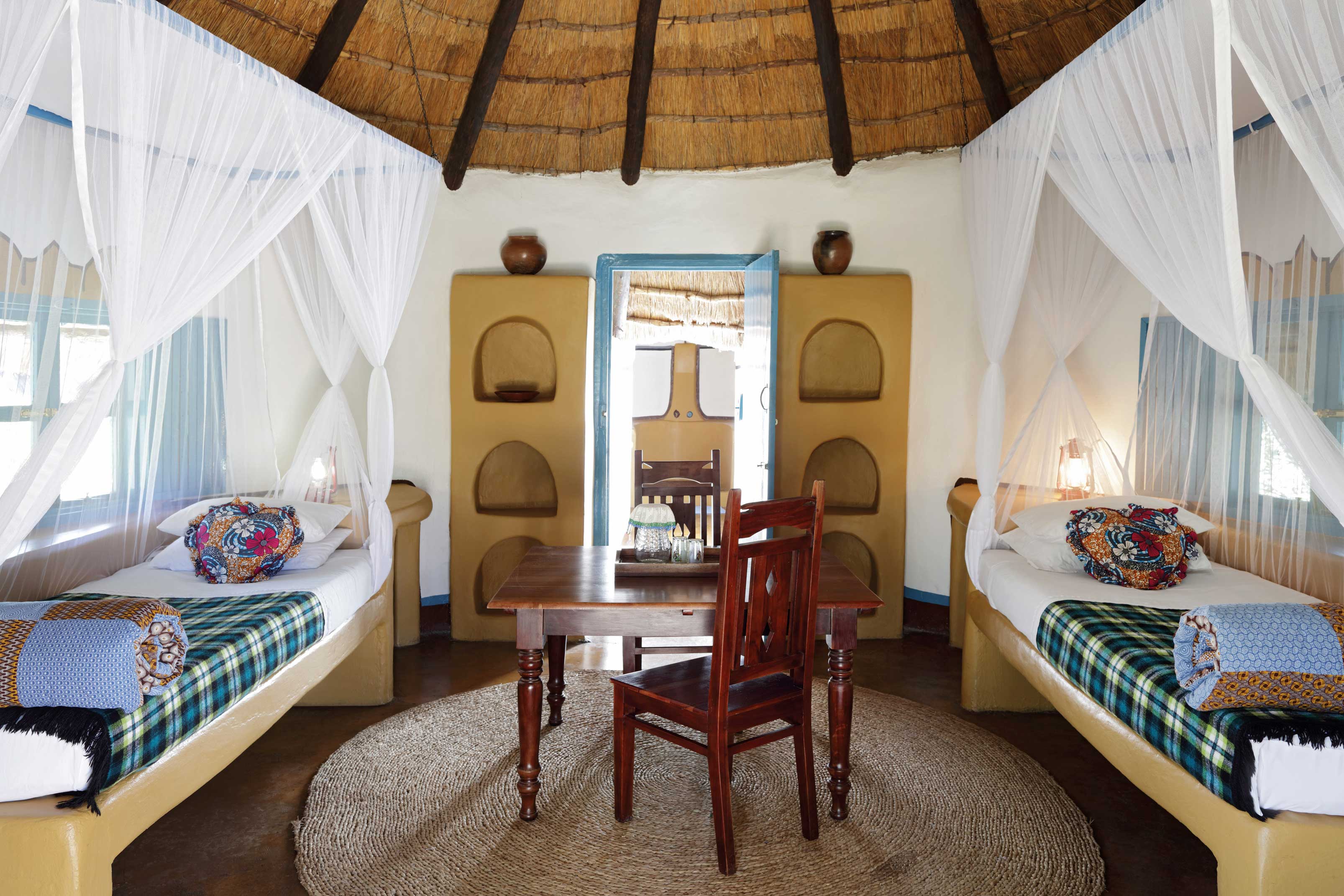 This is a quirky place in a quirky part of the world, where we live cheek to tusk with old elephants; sleep in basic but oh so Afro-chic Bakalanga Huts; swim in the largest, coolest pool in the Kalahari; eat the finest Pan-African cuisine, and of course, drink something cold with hunters and vagabonds, travelers and locals in the funkiest bar in Africa. It’s the coolest desert oasis around – and a part of Africa that few will experience, but all will remember.