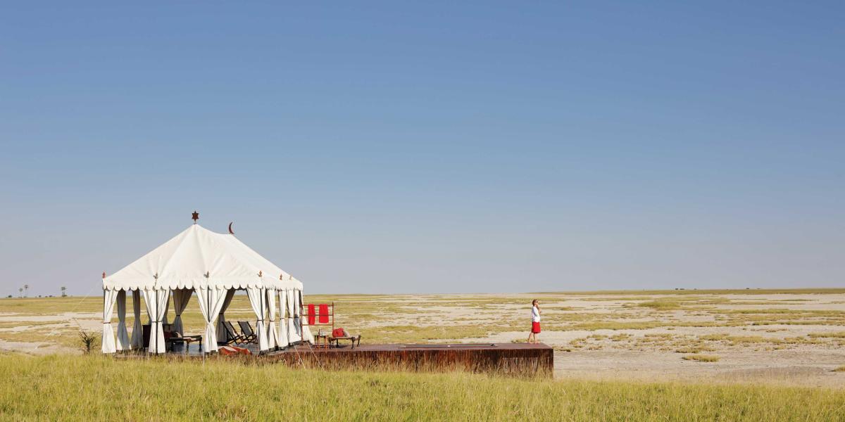 Tau Pan is the first semi-permanent camp inside the Central Kalahari Game Reserve and offers truly incredible views from the elevated ridge of an ancient sand dune, an unusual experience in a land as flat as Botswana, and overlooks the famous Tau Pan - recognised for its stark beauty and remoteness.