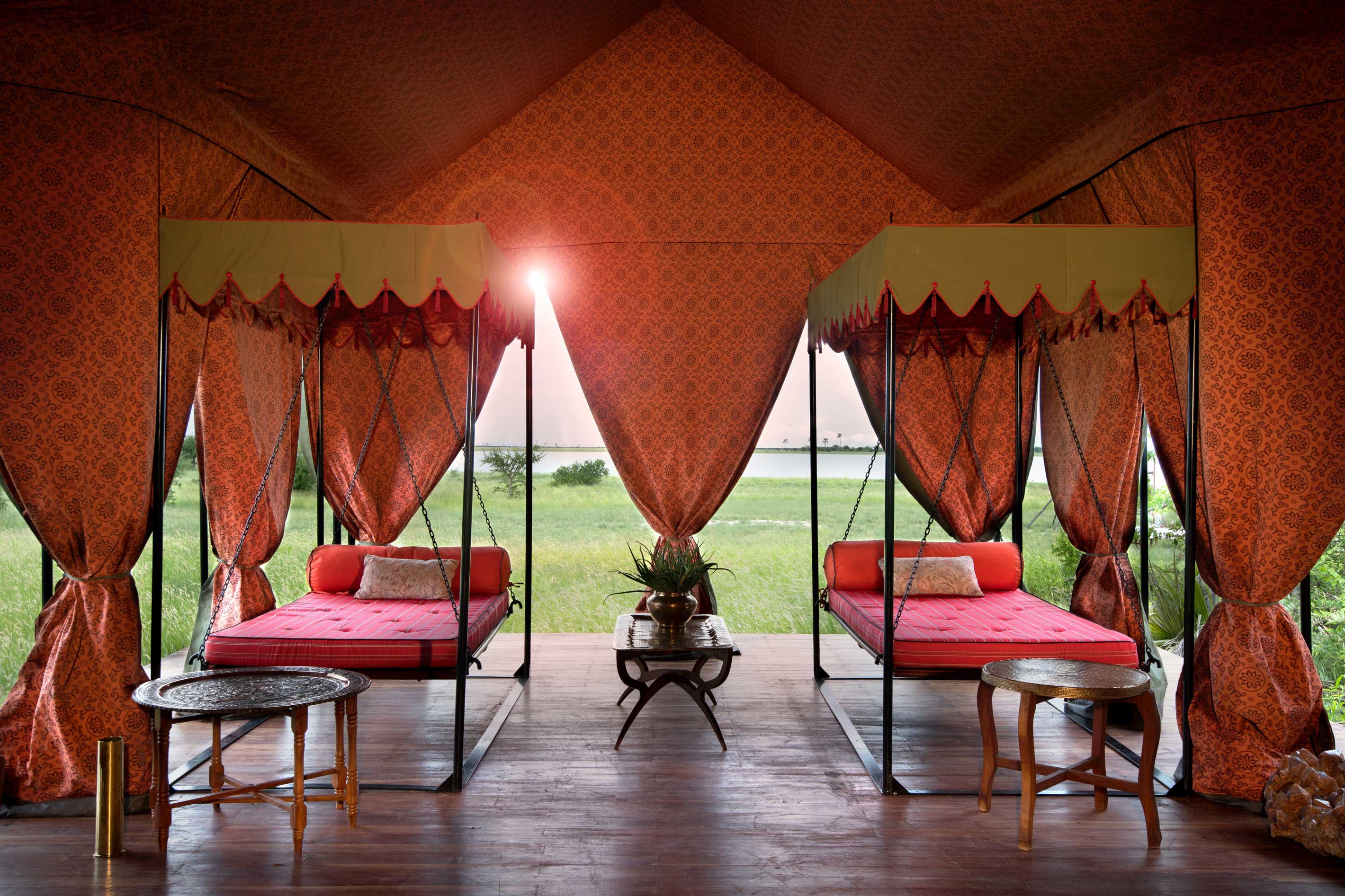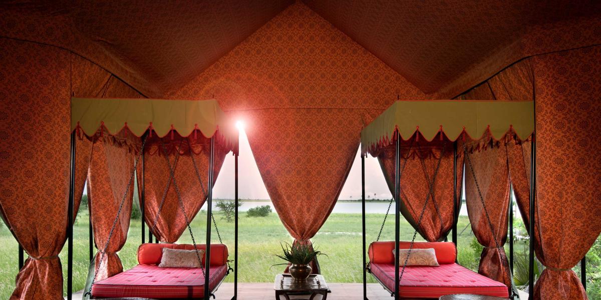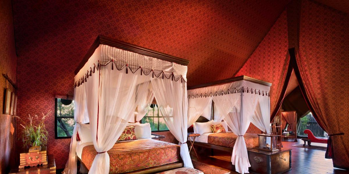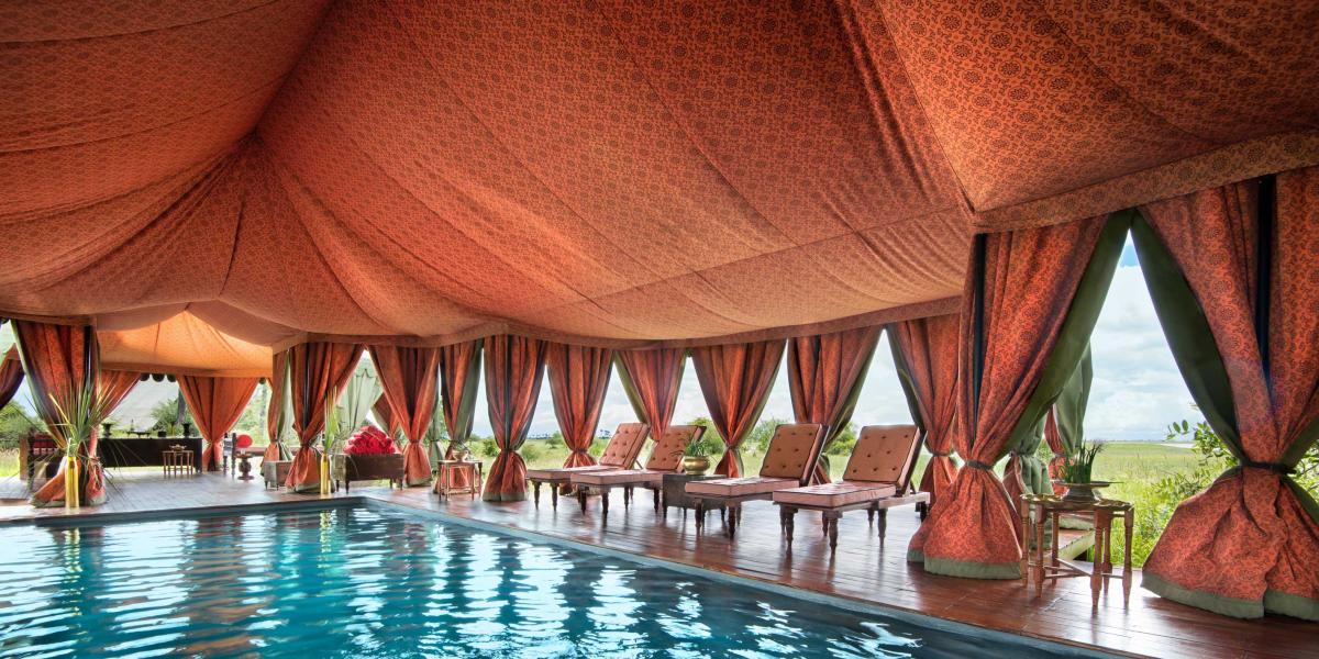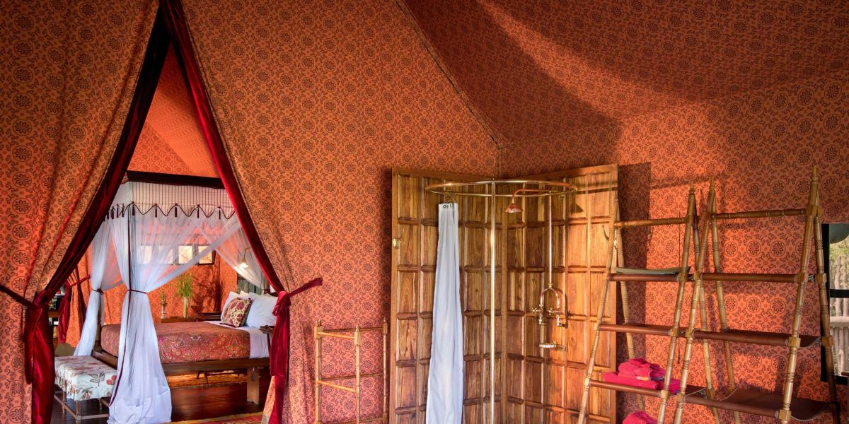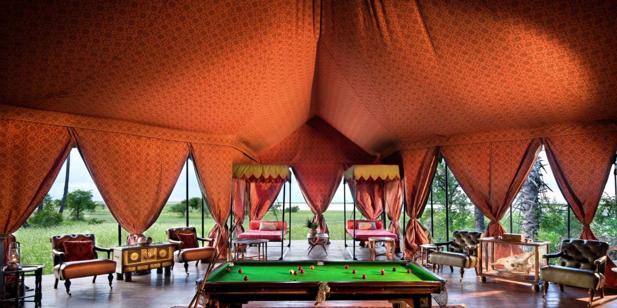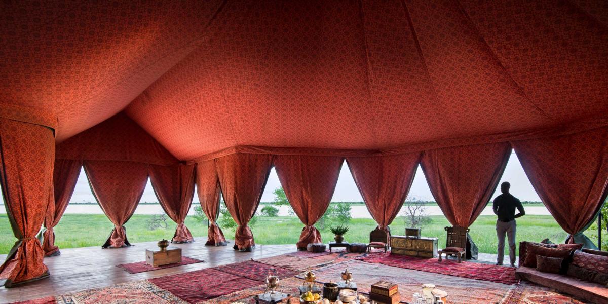 The brand-new Jack’s Camp pays homage to the property’s enduring and much-loved 1940s campaign style. The guest tents, seven twins and two doubles, are much larger and each is 270 square metres in size. The iconic interiors remain and are embellished with rich textiles from around the world, Natural History Museum cabinets, and an overhead bed cooling system. Ensuite bathrooms have both indoor and outdoor showers and outside, each veranda has a private plunge pool.